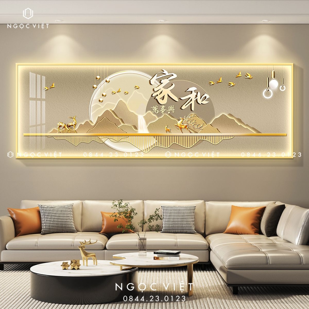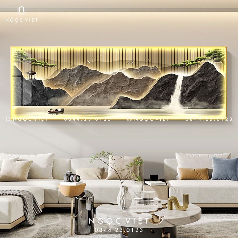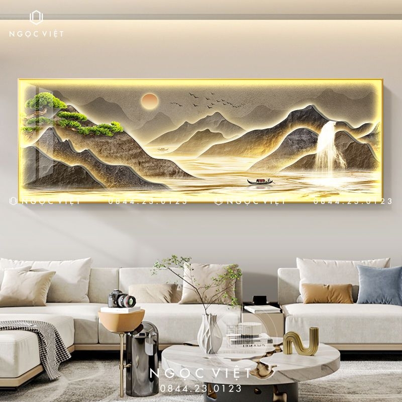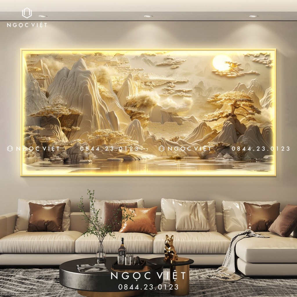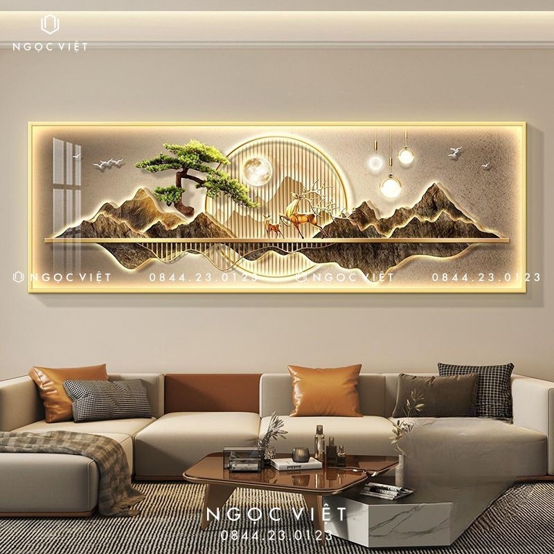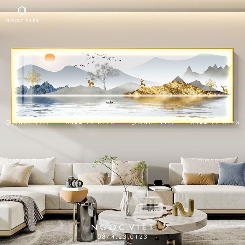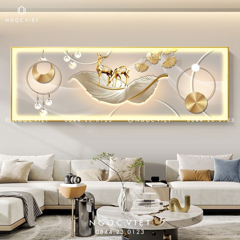 - Tranh có dải đèn LED phát sáng lung linh màu vàng ấm, giúp bừng sáng không gian nội thất khi treo.