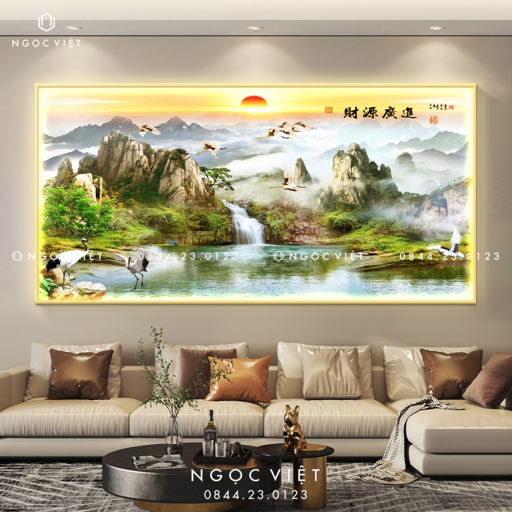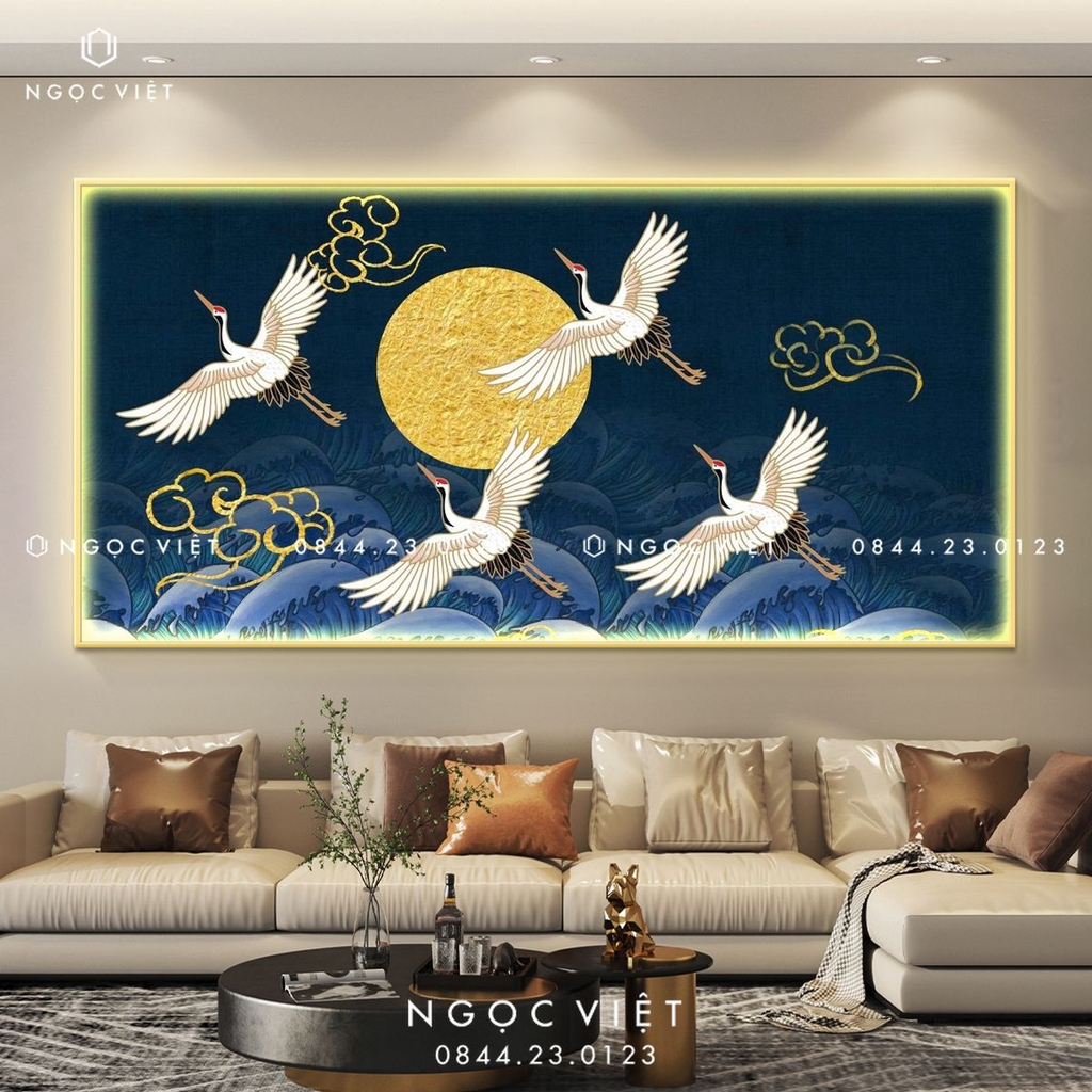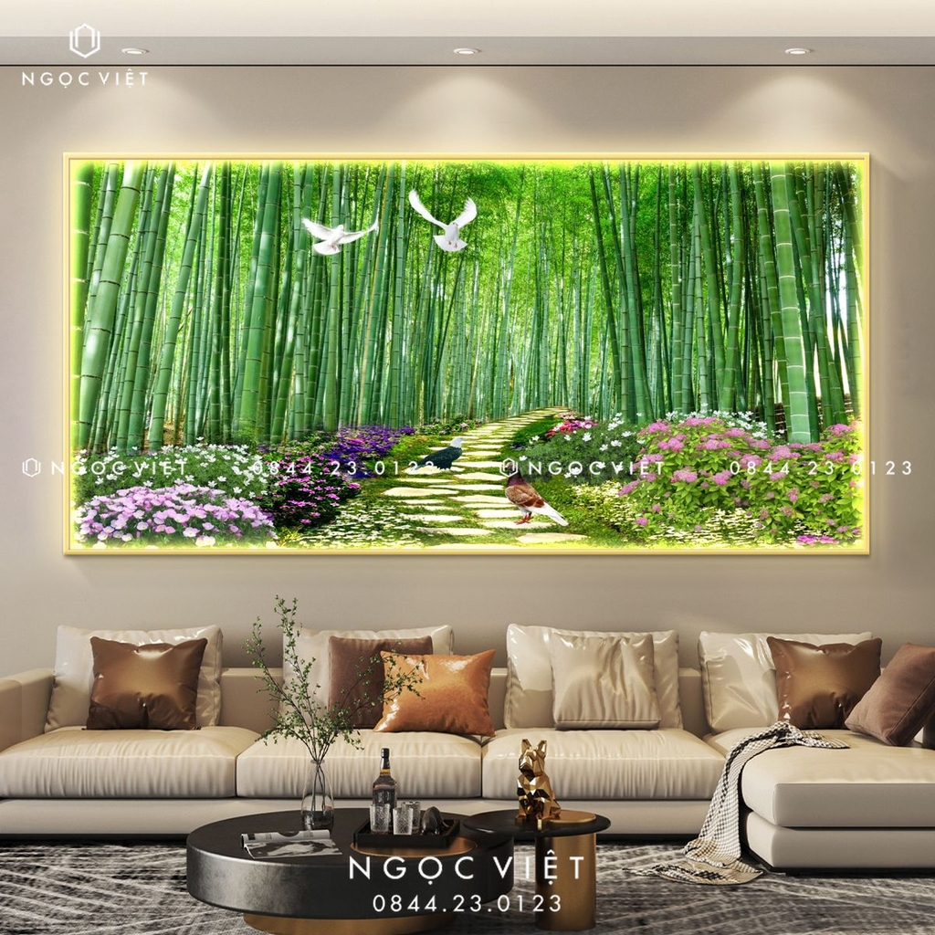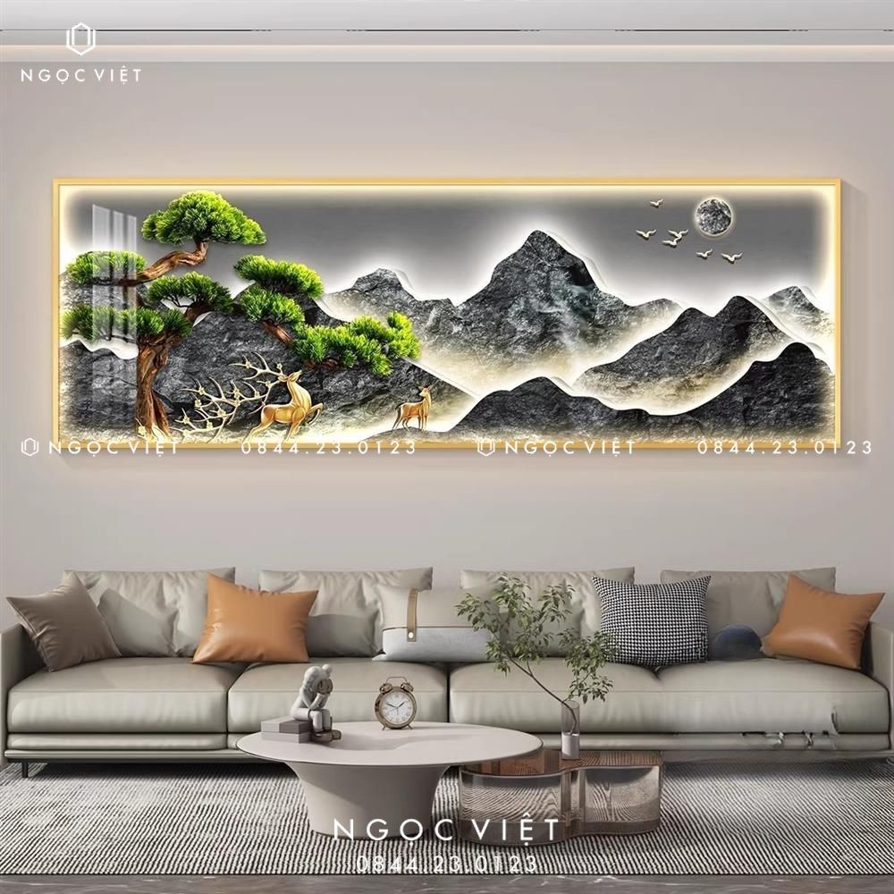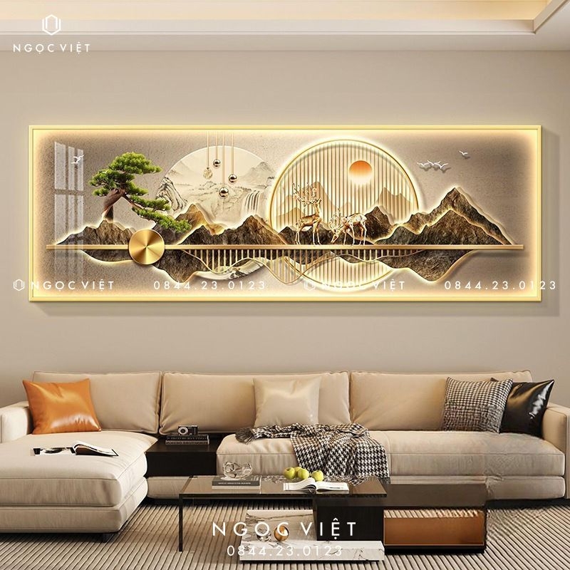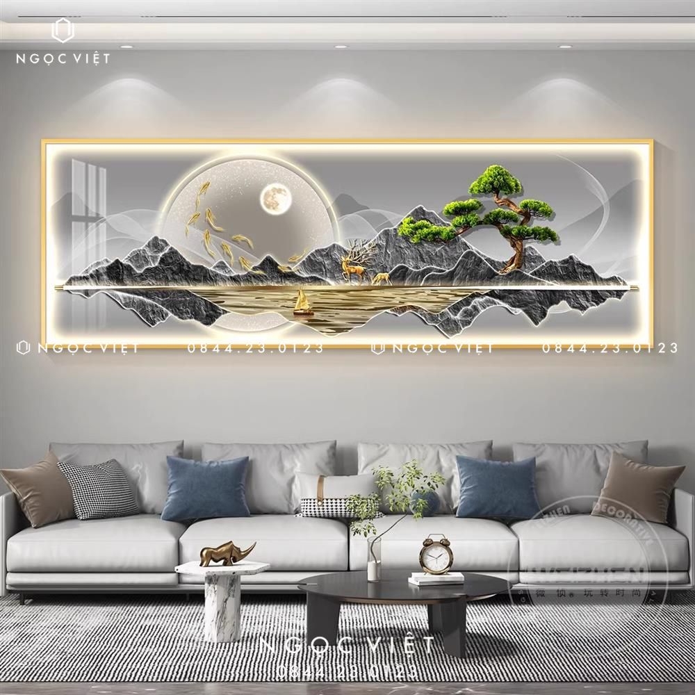 - Tranh có dải đèn LED phát sáng lung linh màu vàng ấm, giúp bừng sáng không gian nội thất khi treo.
