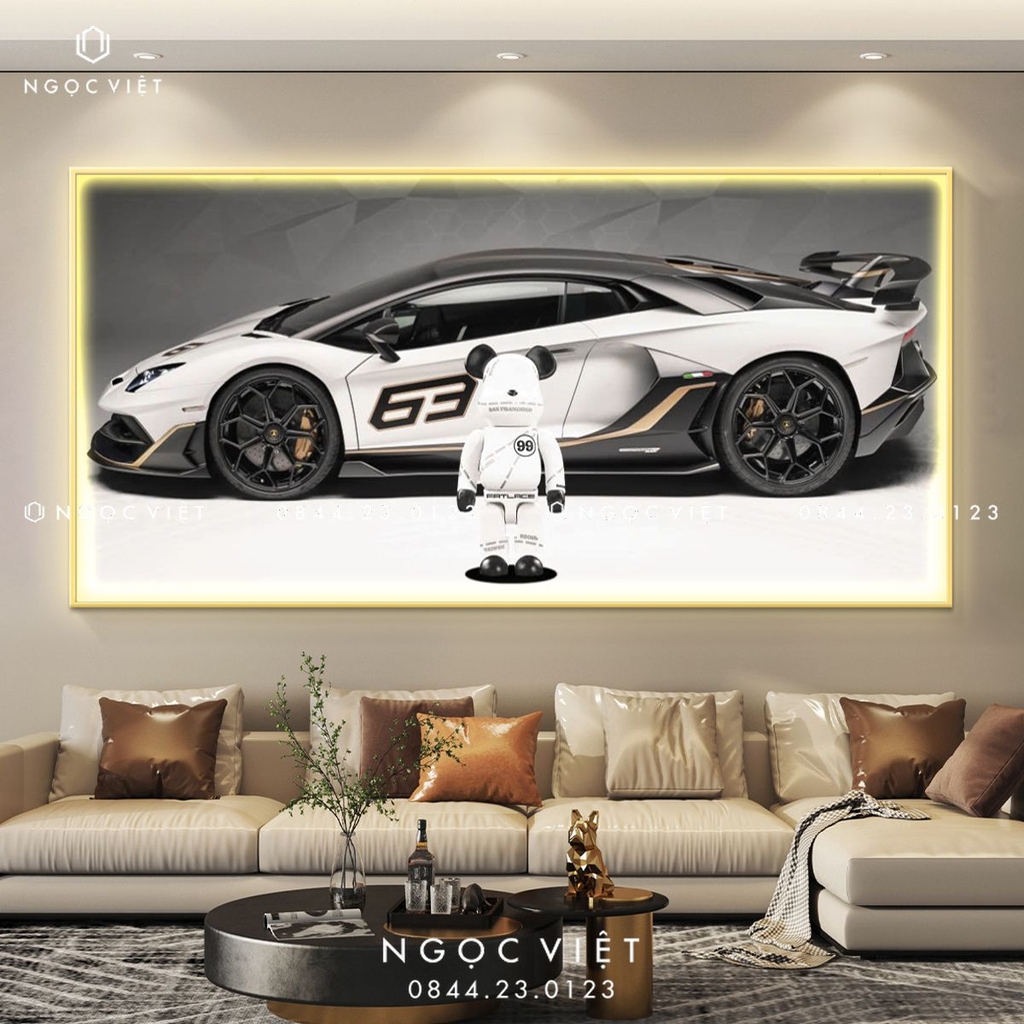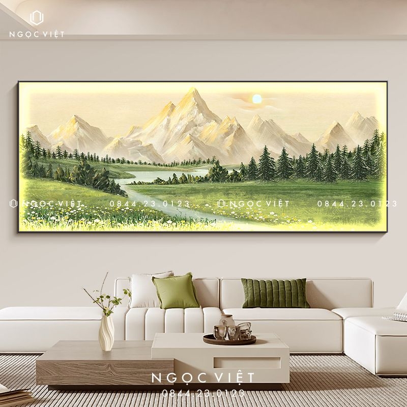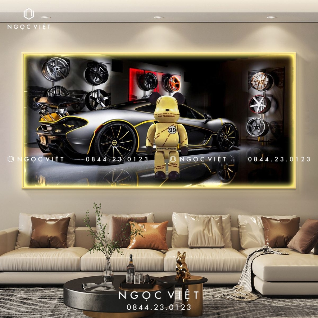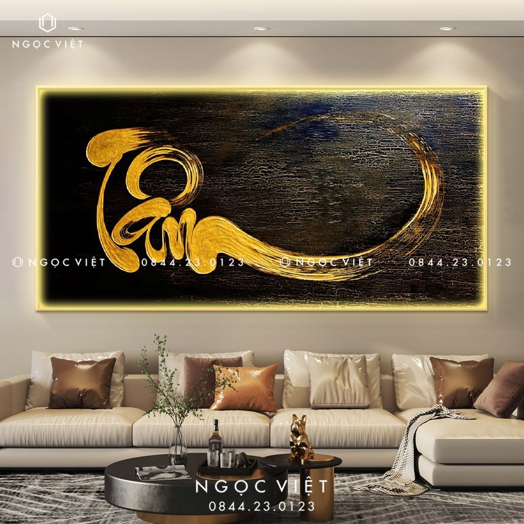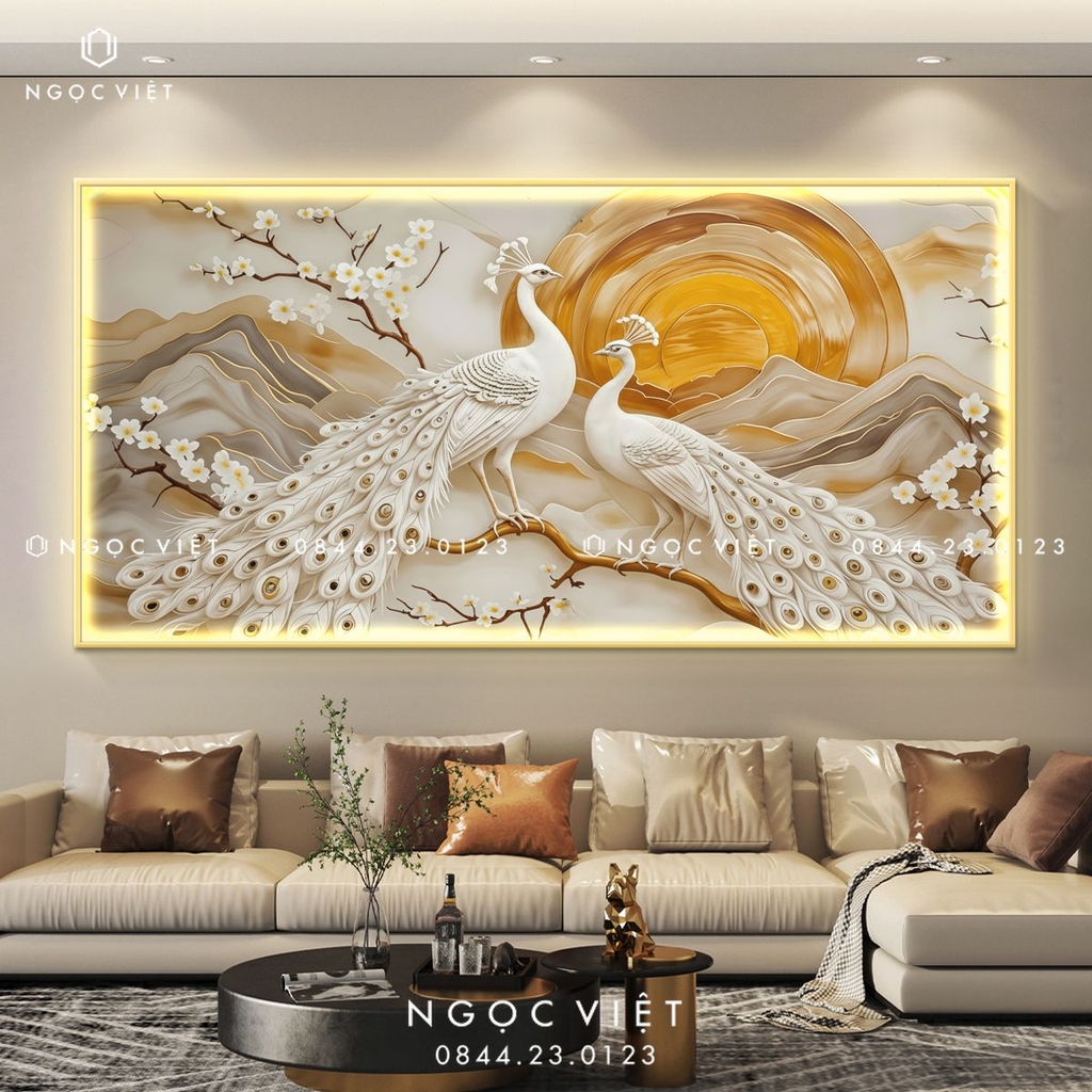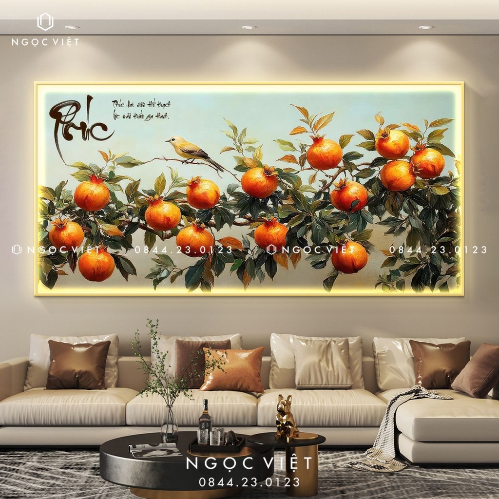 - Tranh có dải đèn LED phát sáng lung linh màu vàng ấm, giúp bừng sáng không gian nội thất khi treo.